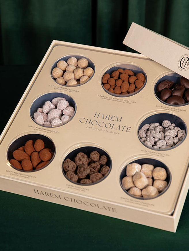 Harem Chocolate olarak 25 yıldır zengin içerikli, yenilikçi ve lüks çikolatalar üretiyor. Üretimdeki ustalığını tamamlaması adına daima en kaliteli çikolata ve en taze içeriklerin arayışında. Misafirlerine sevdikleriyle paylaştıkları özel anlarda veya yeni lezzetler keşfetmek istediklerinde, onlara gurme tadımının eşsiz deneyimini sunmak istiyor. Onun için çikolata üretimi ve sunumu bir coşku, tutku ve duygu meselesidir.