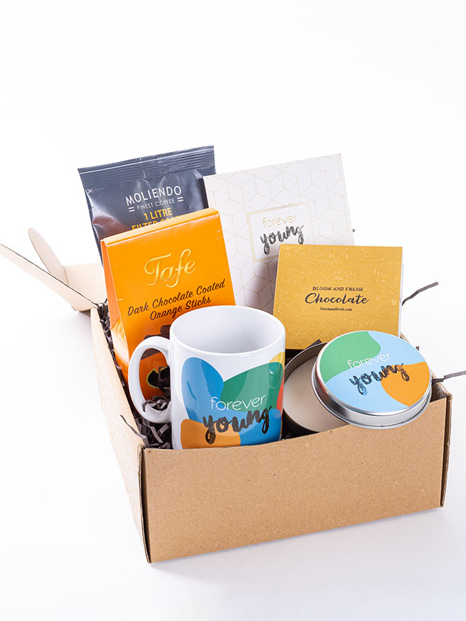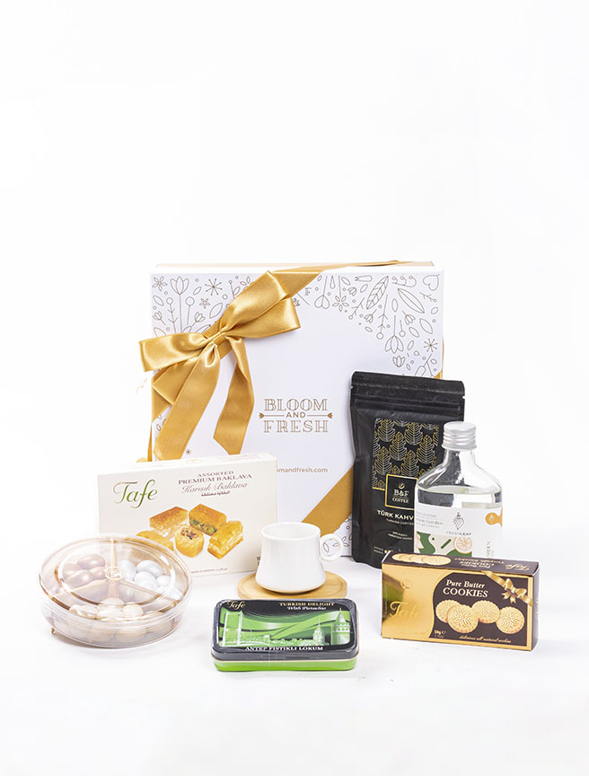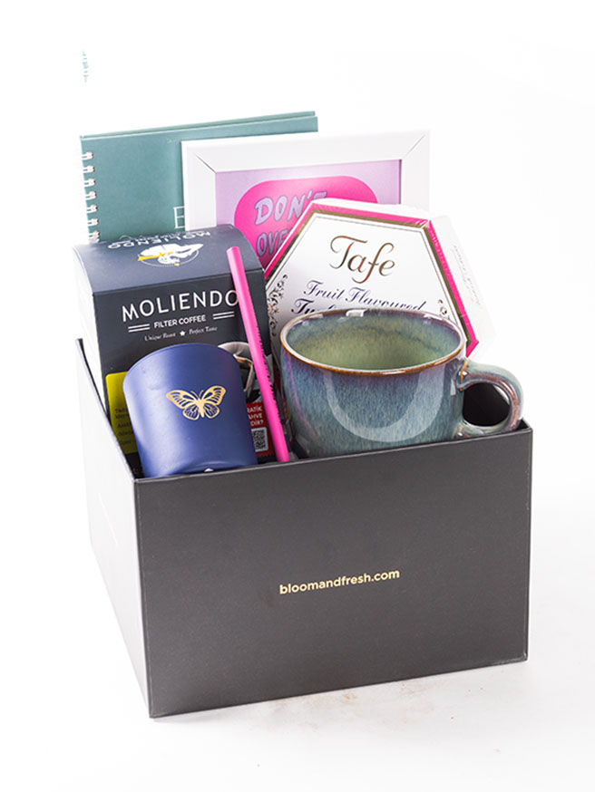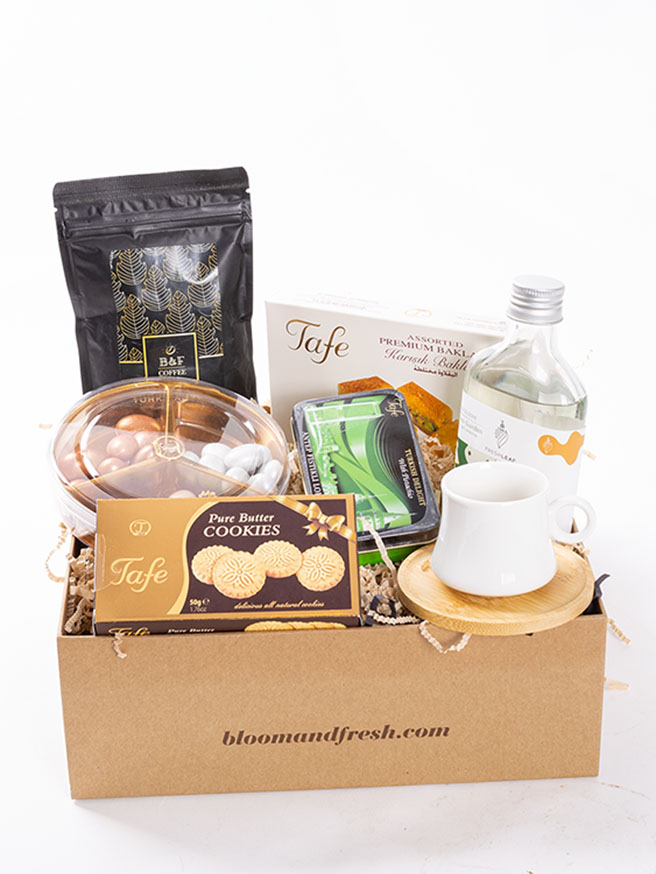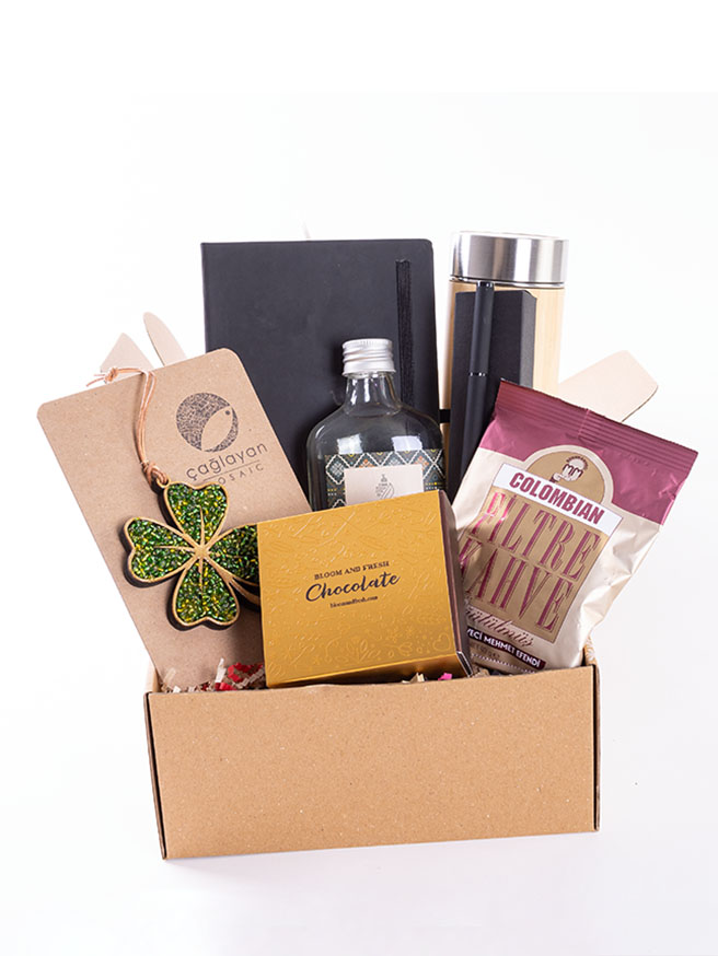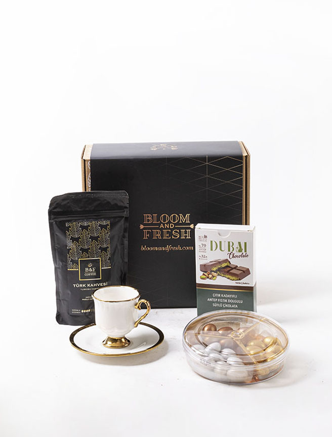 Birbirinden özel ve içerisinde çikolatadan kahve çekirdeğine, french press'ten mug'a kadar çeşitli ürünler olan butik hediye kutuları Bloom & Fresh'te.