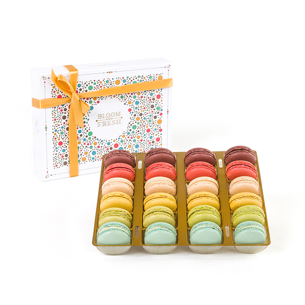 Bloom and Fresh ile gözler, gönüller yetmedi damaklara da mutluluk getirmek isteyenler için Frambuazlı, Antep Fıstıklı, Çikolatalı, Vanilyalı, Limonlu ve Hindistan Cevizli makaron ile hazırlanmaktadır. Makaron çeşitleri dönemsel olarak farklılık gösterebilmektedir.